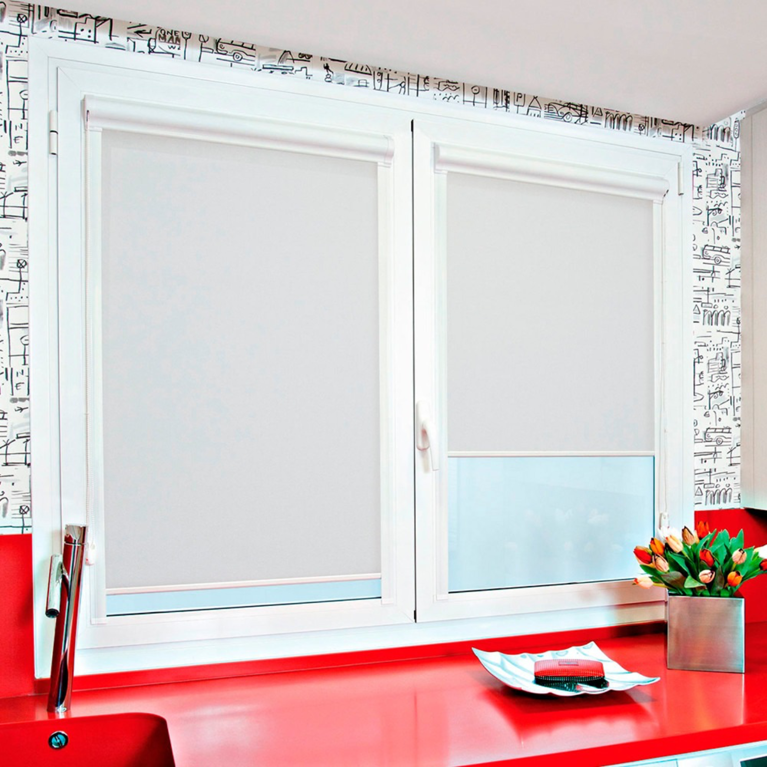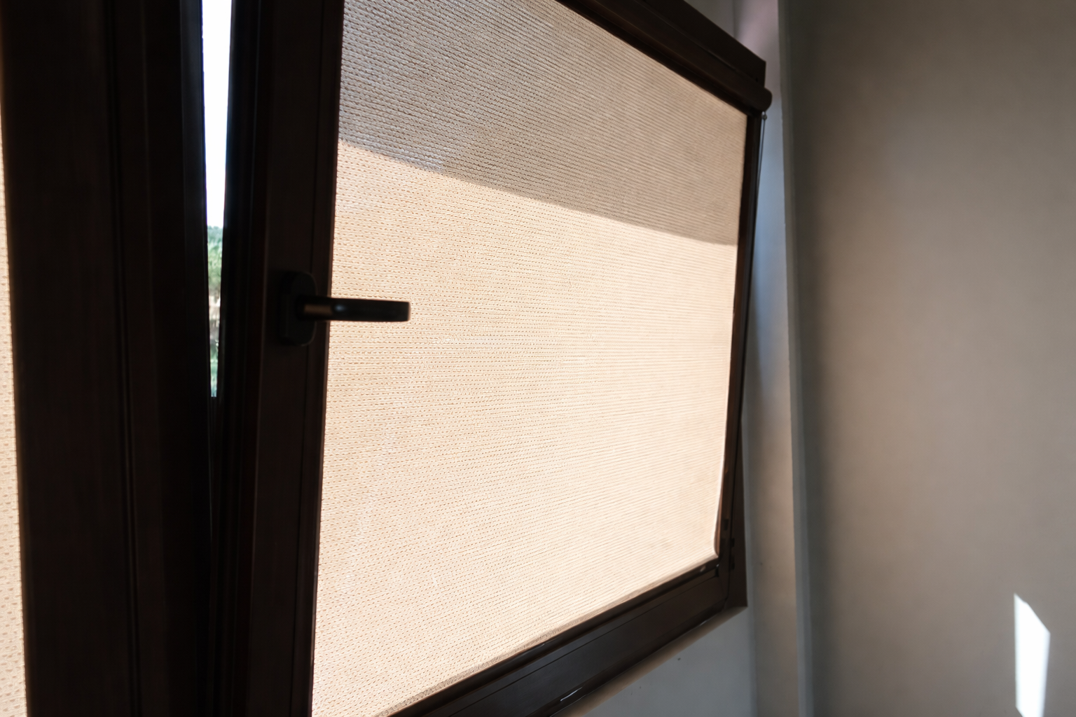 Los estores con sistema de cajón y guías laterales integradas en el junquillo de la ventana ofrecen una solución discreta y funcional para el control de la luz. Este sistema se instala directamente sobre la hoja de la ventana, con las guías pegadas al cristal, lo que permite que el tejido se mantenga siempre en su posición, incluso al abrir o inclinar la ventana.