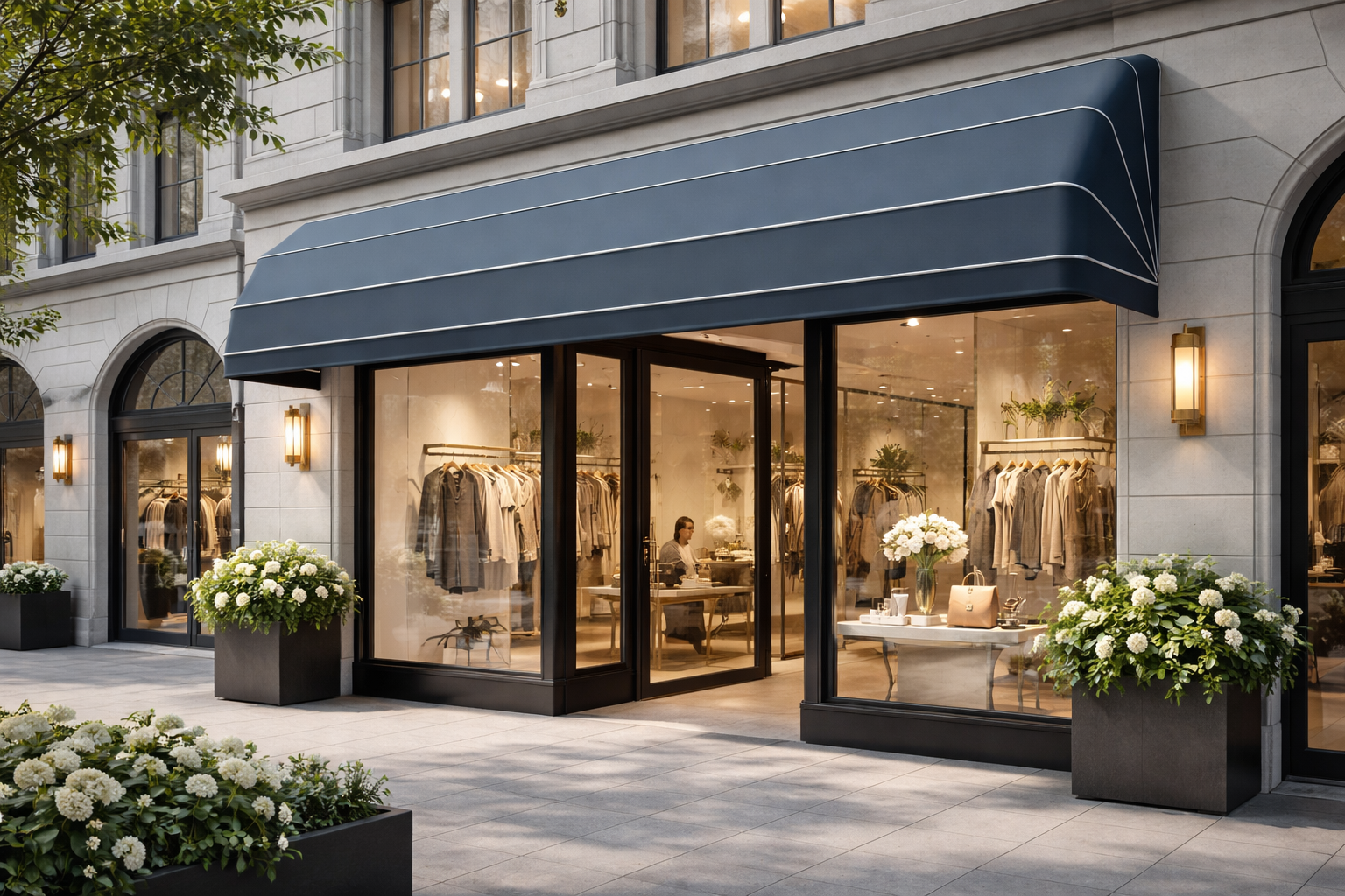 En locales comerciales, son una opción muy utilizada para escaparates y entradas, mejorando la visibilidad del negocio y la protección frente al sol.