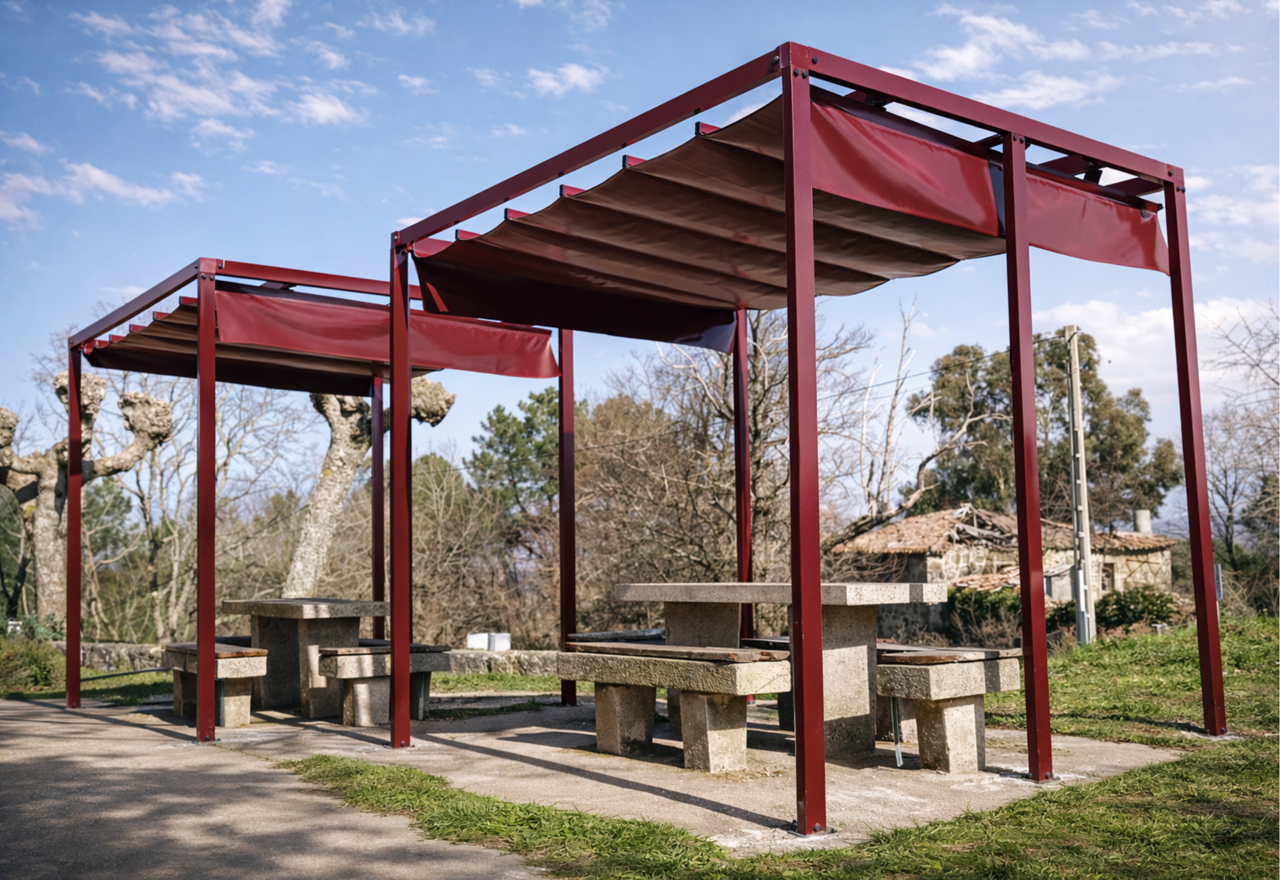 Es una opción muy utilizada en la provincia de Ourense para zonas exteriores que requieren una protección solar permanente.